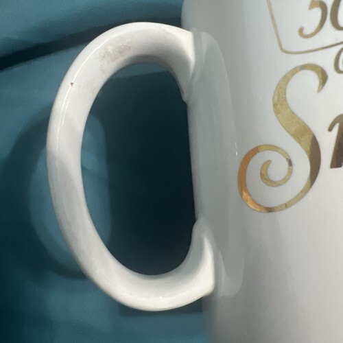 Preowned a little chip on the rim of the mug. A blemish on the inside of the handle? might come off with scrubbing. Other than that looks like it?s in good shape. See pictures for details. Ask questions. Thanks !