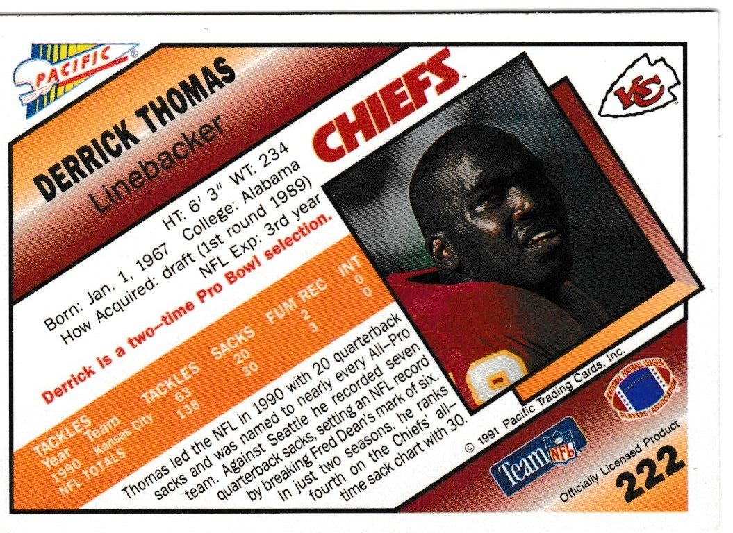 1991 Pacific Derrick Thomas Football Trading Card #222 Kansas City Chiefs