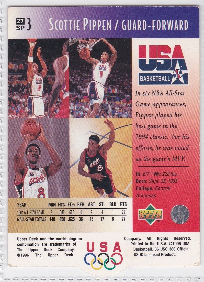 G) 1996-97 Upper Deck Basketball Trading Card USA Olympics Scottie Pippen 27 SP3