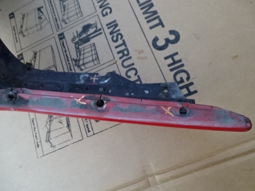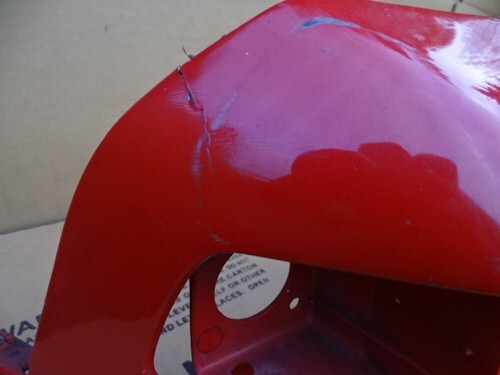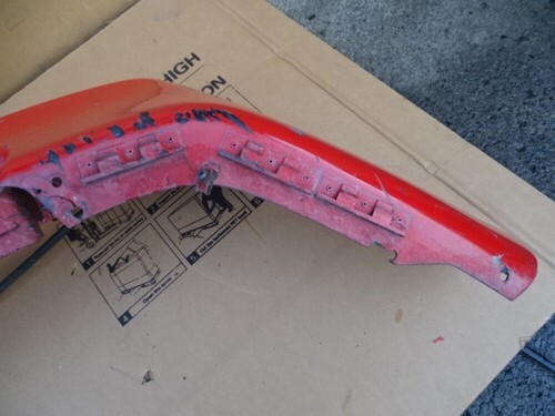 Notes: Paint color is red. Has scratches and markings. Has some broken tabs. Center bottom trim has cracks. See photos. ( #22 #23 #24 ).