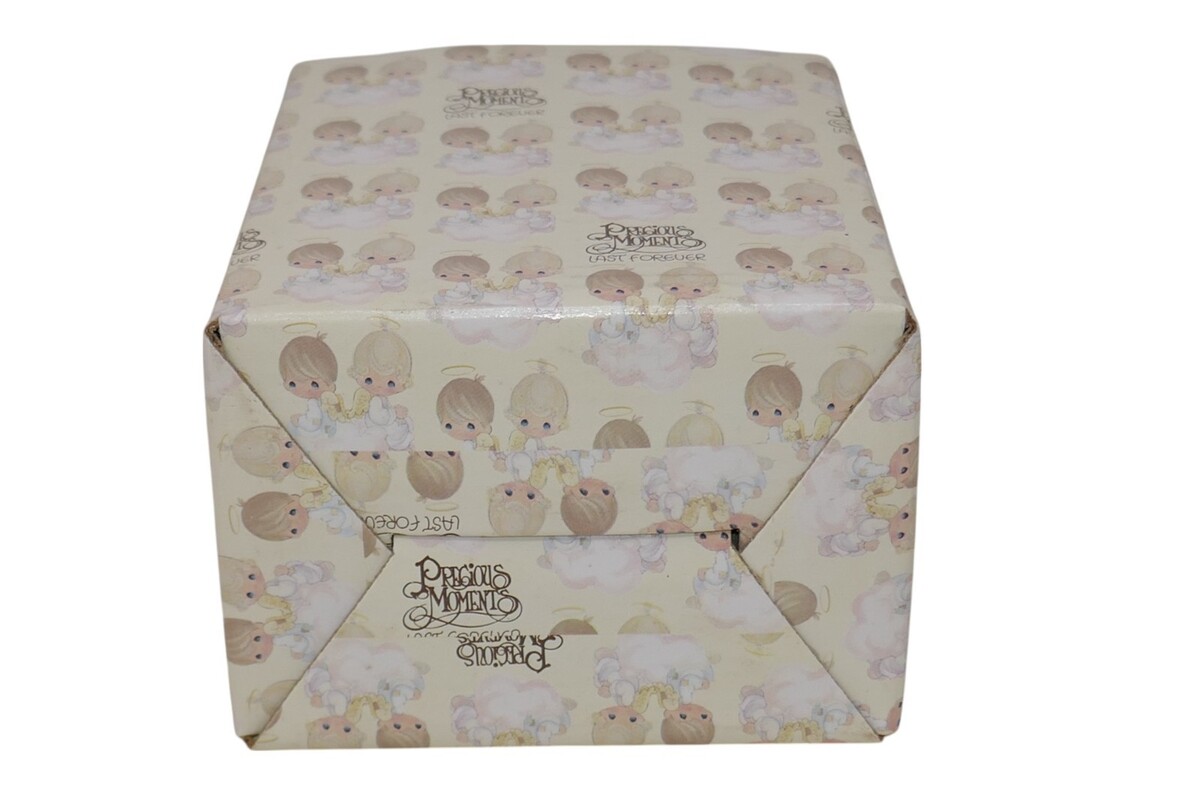 The Precious Moments Figurine is a small porcelain figurine depicts a heartwarming portrayal of a little boy sharing a sucker. Measures approx. 5" tall with no chips or cracks. Packaged in its original boxed packaging, this figurine is a timeless piece perfect for all occasions. The box and packaging have minimal wear.