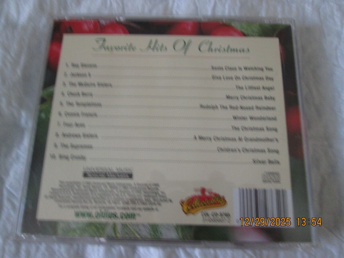 The "Favorite Hits of Christmas Original Hits by Original Artists" CD is a compilation of classic Christmas songs performed by the original artists. With a variety of artists and hits included, this CD is perfect for enjoying the holiday season with some of the most beloved songs in English. The CD comes in a multicolor jewel case and is in very good condition, making it a great addition to any music collection for the Christmas season. If you have any questions, please content me. Thank you and GOD BLESS.