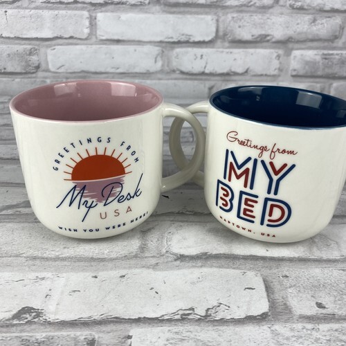 Lot of 2 15oz Stoneware Greetings From My Bed Greetings From My Desk Mugs