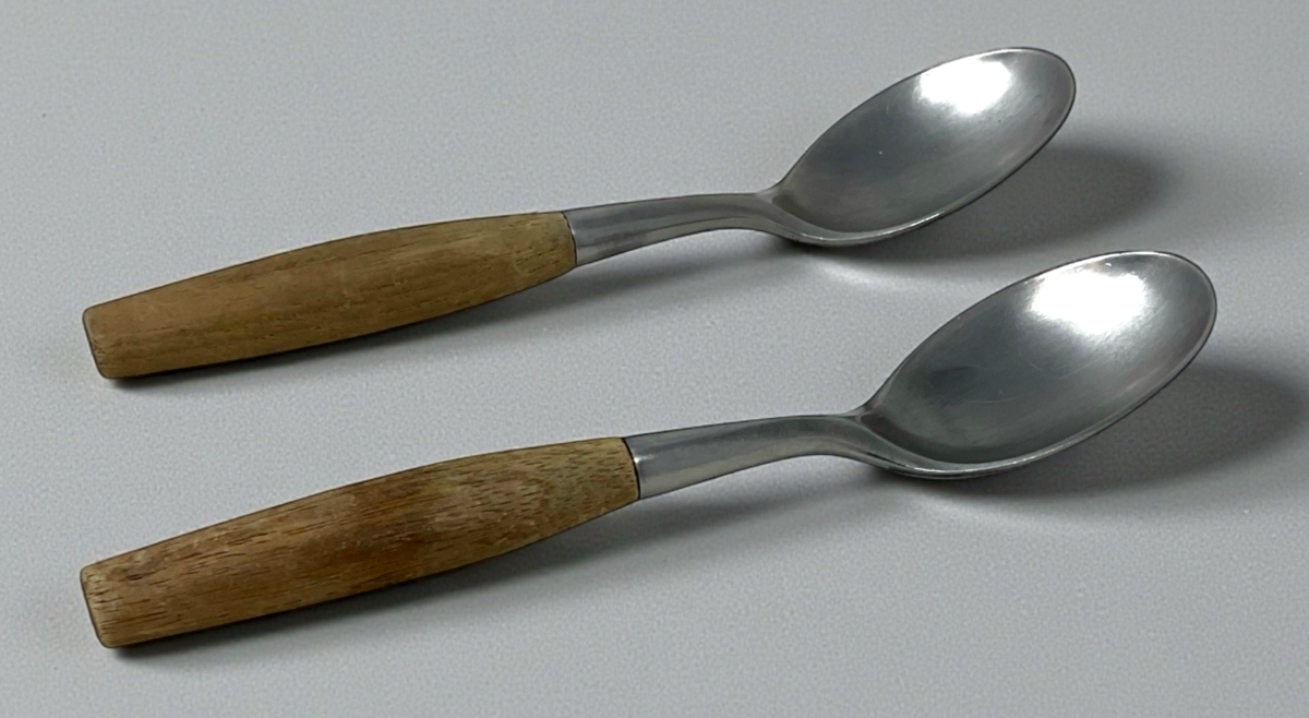 Vintage Dansk FJORD Dinner Spoons 6 1/8” Set of 2 – Teak Teakwood Handle Stainless Steel Germany Mid?Century Modern