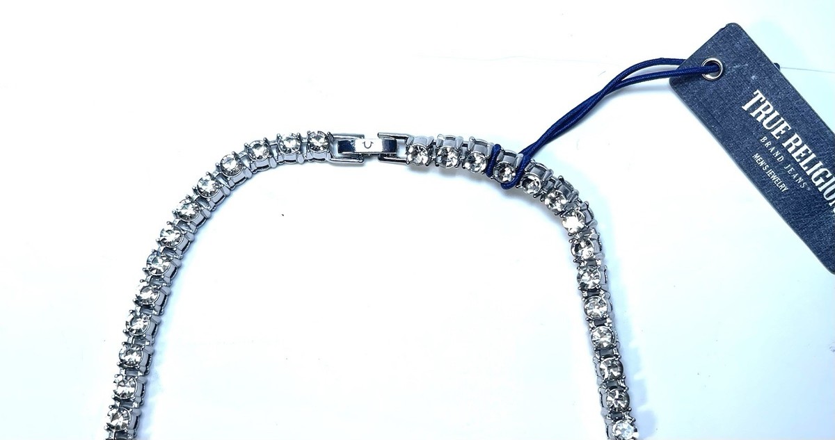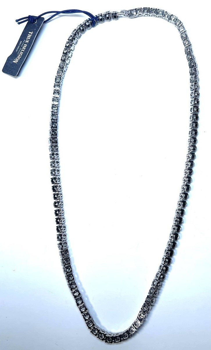 NEW TRUE RELIGION Silver Alloy Crystal Rhinestone Pave Tennis Necklace