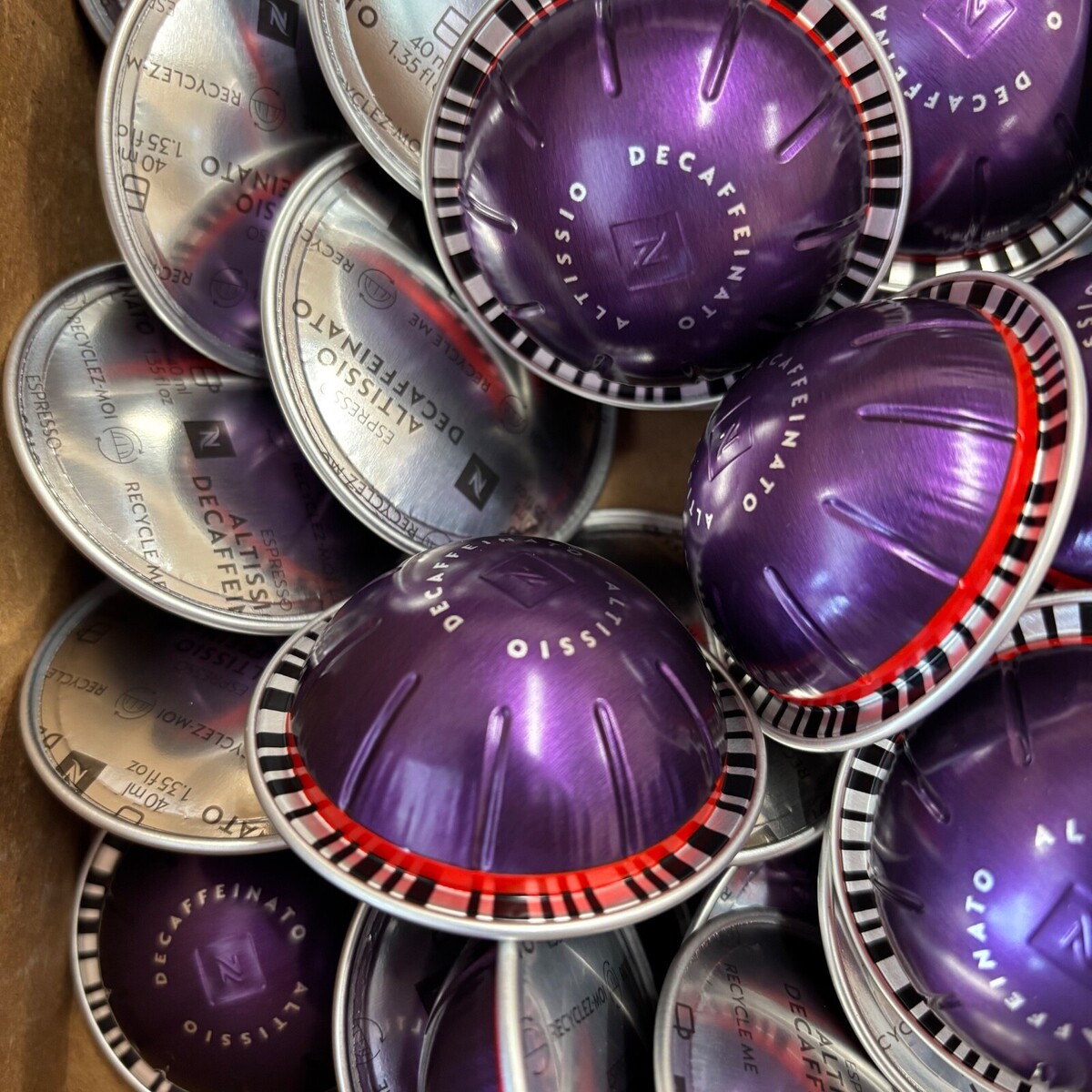 Nespresso Capsules Vertuo, Altissio Decaffeinato, Dark Roast Espresso, 100-Count Espresso Pods, Brews 1.35 oz.