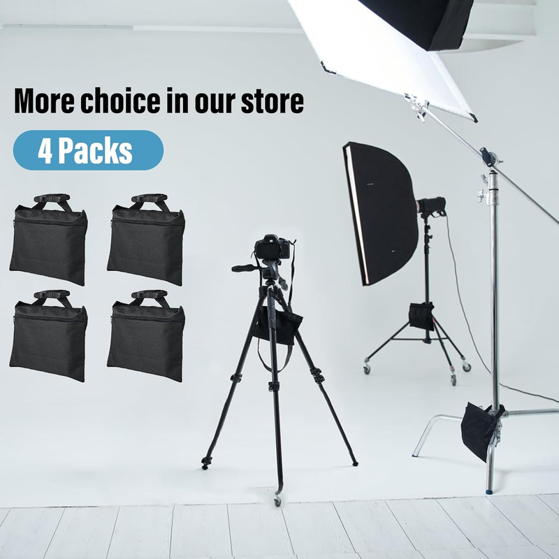 Sandbags 4 Packs with 4 PE Bags, Heavy Duty Sand Bags, Sand Bags for Weight with Zipper and Buckle Straps for Support Light Stand, More 2/4/6/8/10/12 Packs Sand Bag to Choose.