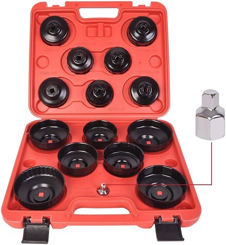 15Pcs Cup Type Oil Filter Cap Wrench Socket Removal Tool Set Domestic & Import