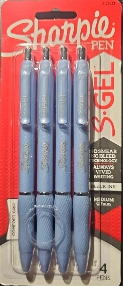 Sharpie S-Gel Pens, Medium Point (0.7mm), Frost Blue Body, Black Gel Ink, 4 Ct