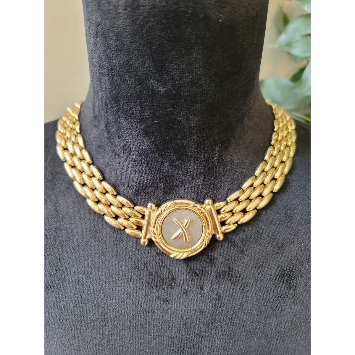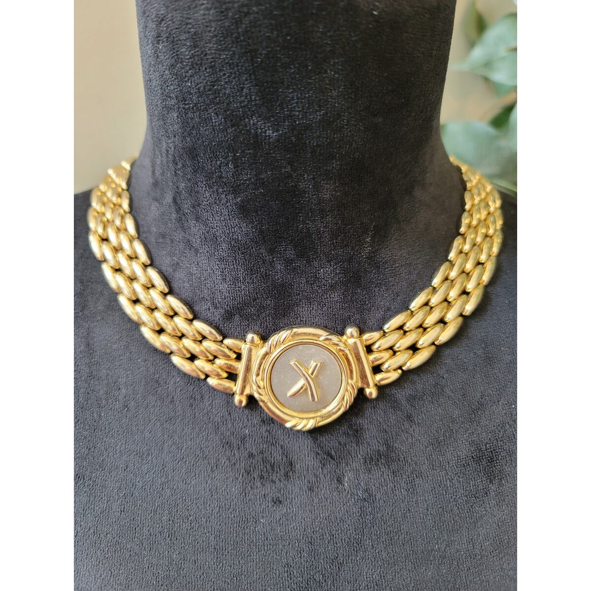 Women's Gold Plated Choker Necklaces With Round X Emblem And Fold Over Lock