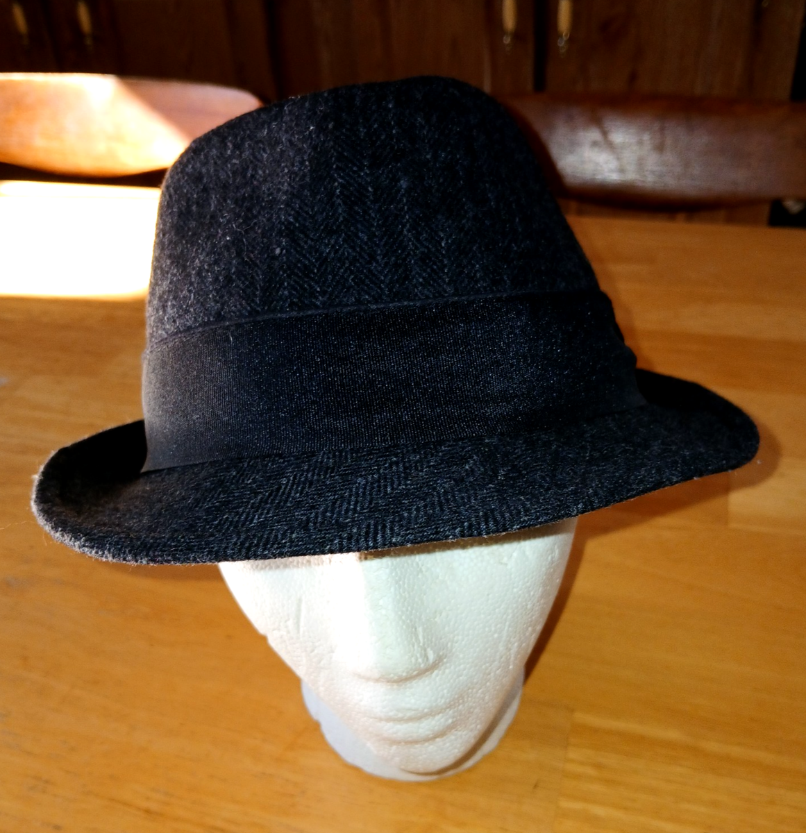 THIS IS A NICE MEN'S STETSON WOOL/POLYESTER DARK CHARCOAL/BLACK MUTED STRIPE FEDORA HAT IN A SIZE SMALL/MEDIUM. IT IS IN EXCELLENT, WORN ONCE, CONDITION.