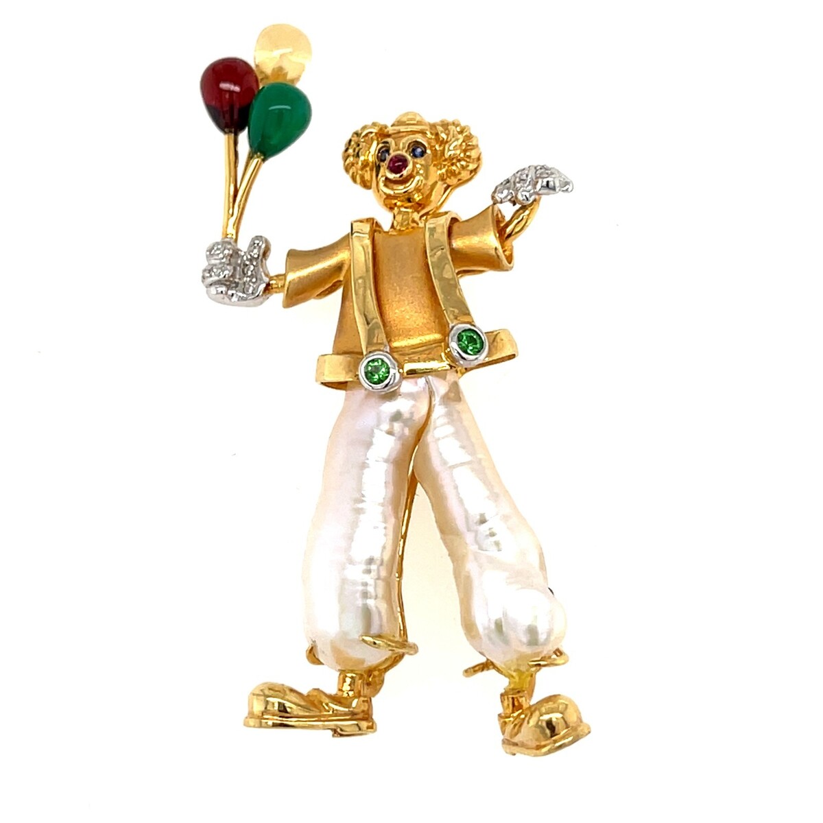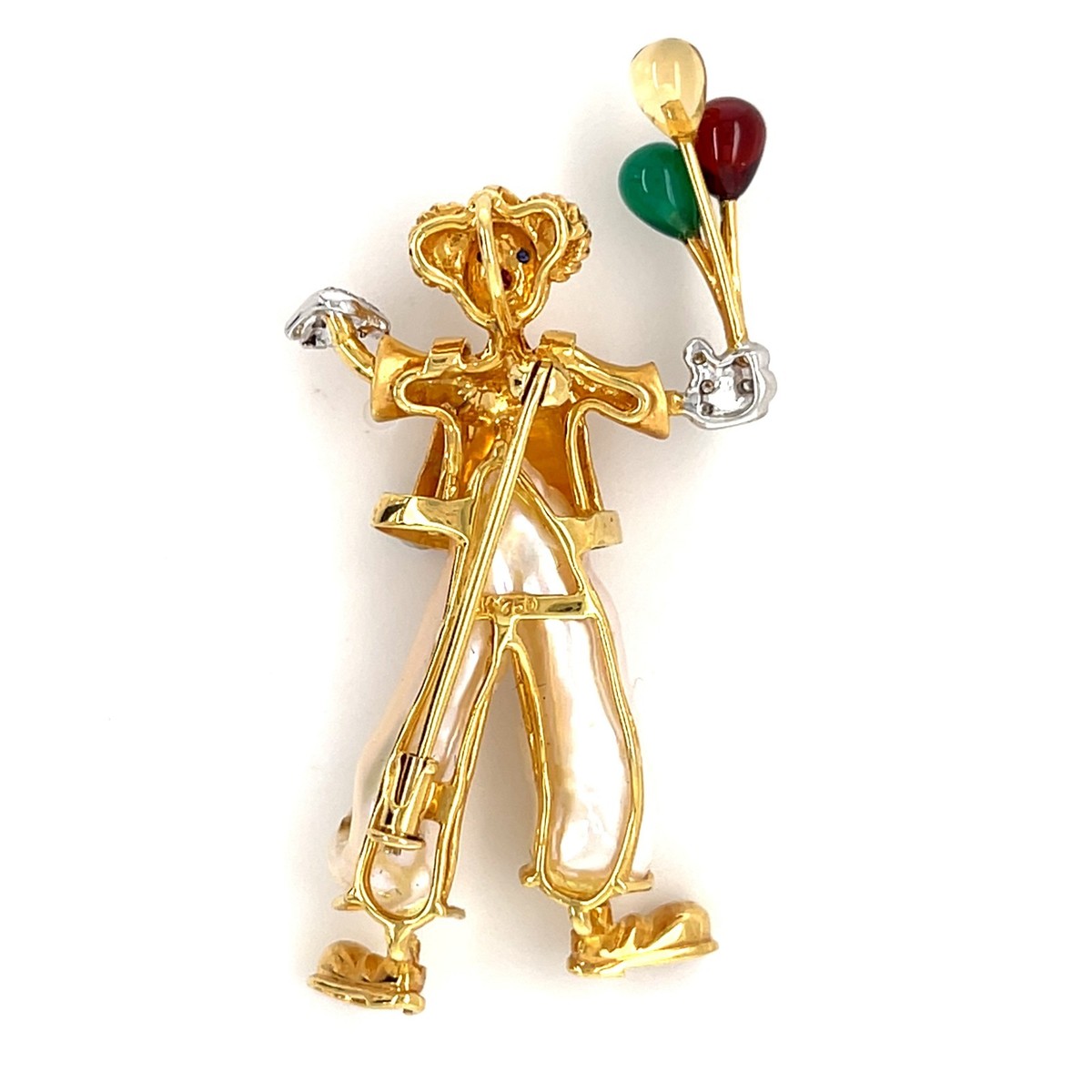 18k Yellow Gold Multi-Gem Cultured Pearl Clown Brooch Adorable!
