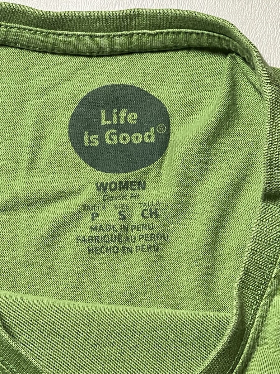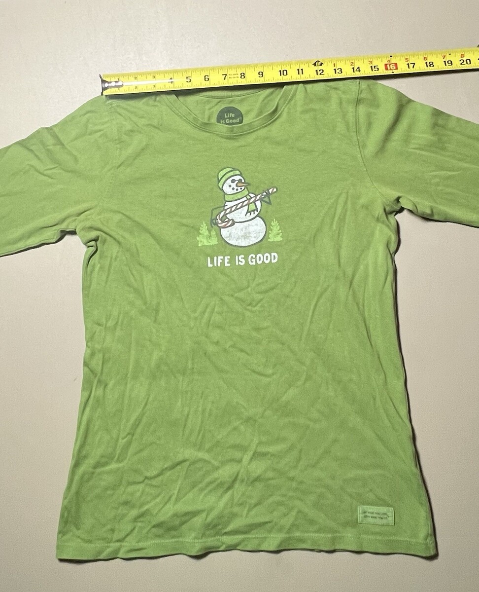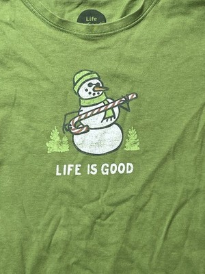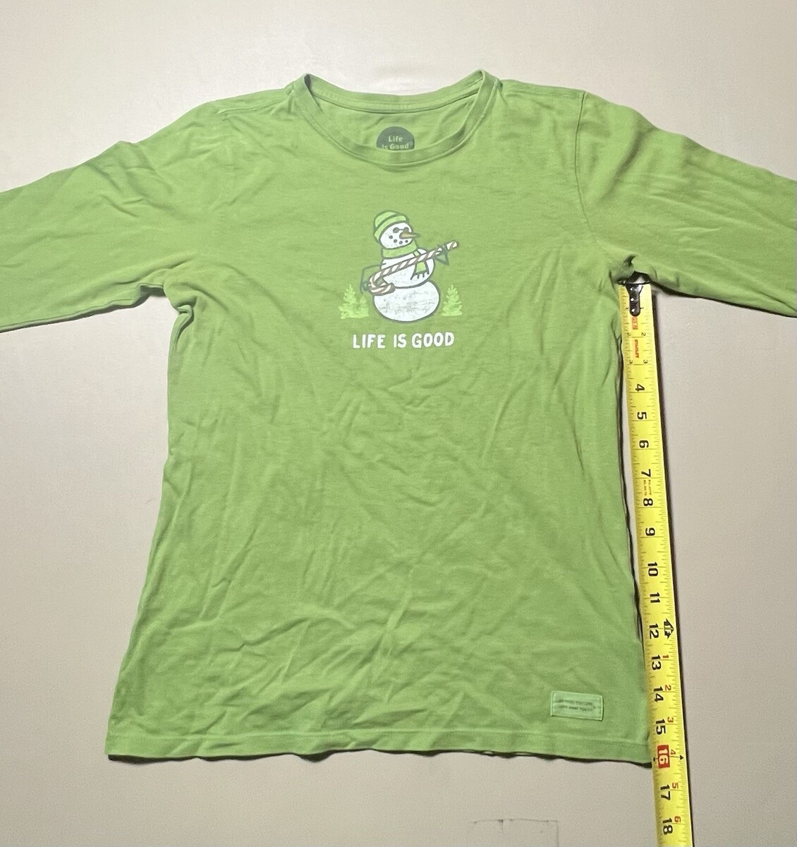 Life Is Good Classic Fit Long Sleeve Tee Women’s S Green Snowman Candy Cane Snow