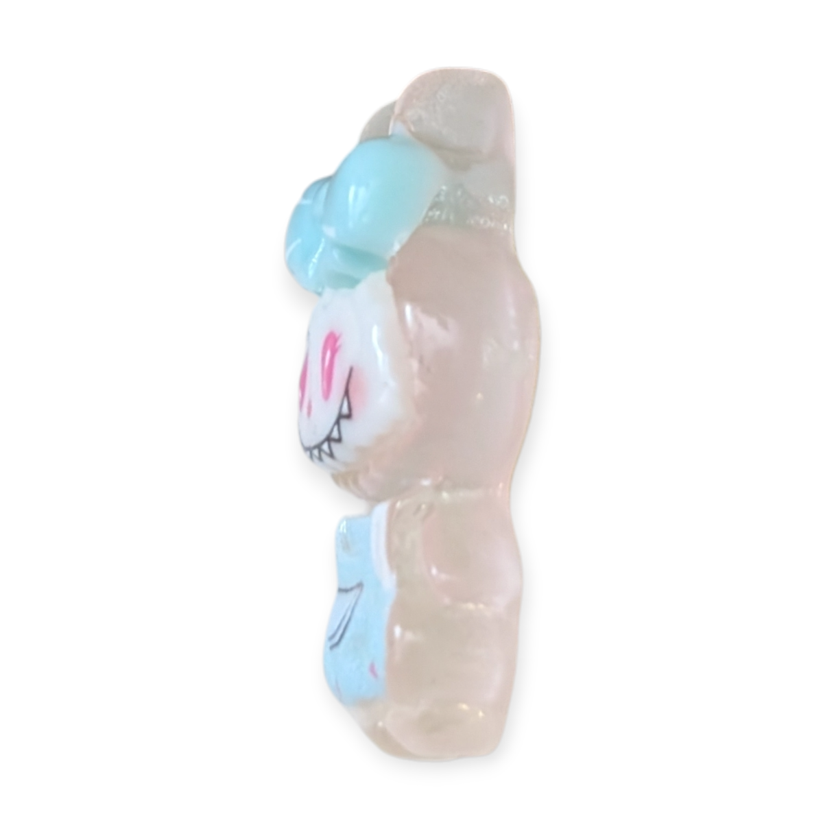 Anime Miniature Toy Charm: White Labubu Troll Monster in Blue Dress, 1 in.