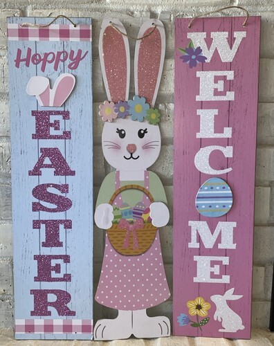 Easter Hanging Wall Decor Glittery Bunny & Carrots ‘Happy Easter’ 16”Hx9", E21