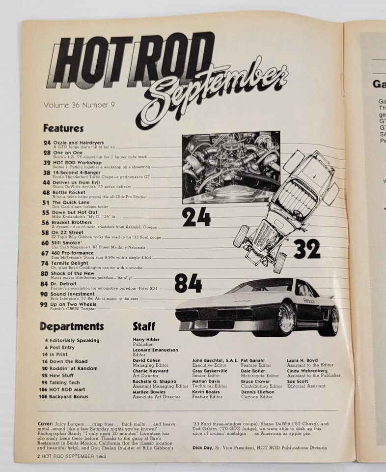 PV) Hot Rod Magazine September 1983 Volume 36 Issue 9 Chevrolet Ford Dodge Mopar