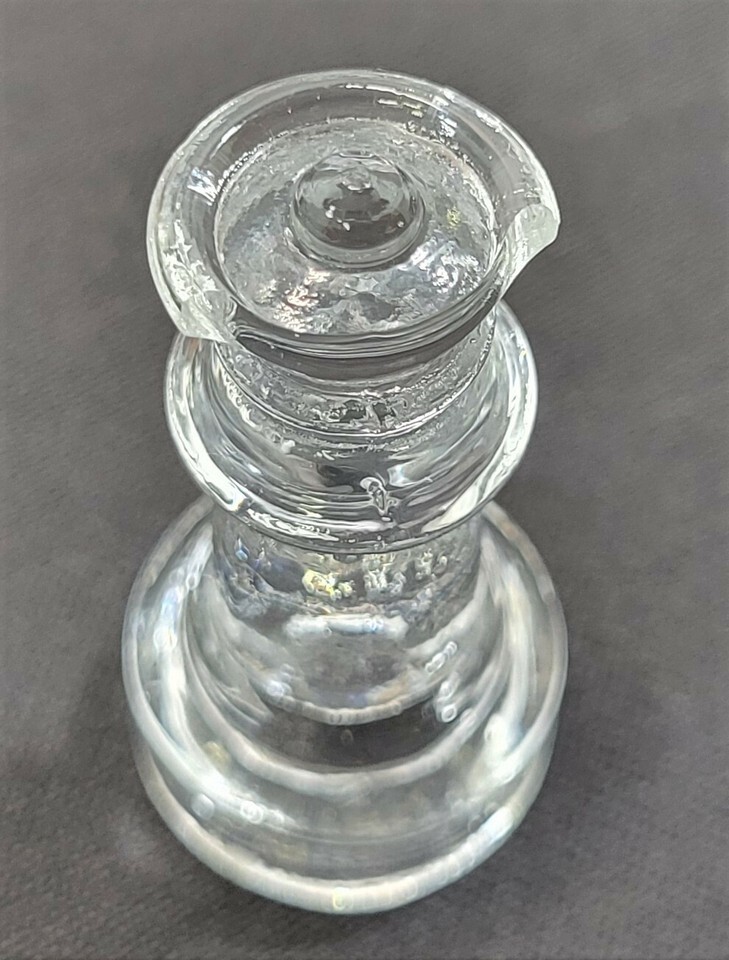 Set is in overall good slightly used condition. The clear queen piece has a very slight chip to the upper rim visible when examined closely. Box shows some signs of age and storage with slight taped repairs.