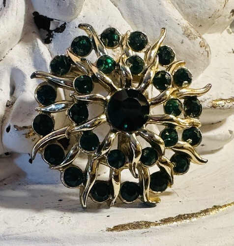 *B9) Vintage Gold Tone Faux Green Emerald and 35 similar items