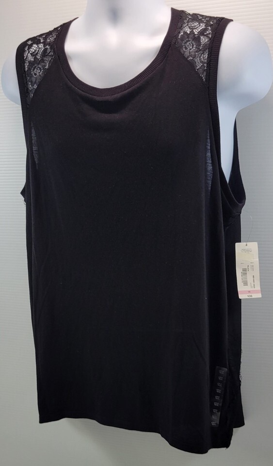 L3) A.N.A Woman Sleeveless Black Semi-Sheer Lace Top Shirt 1X