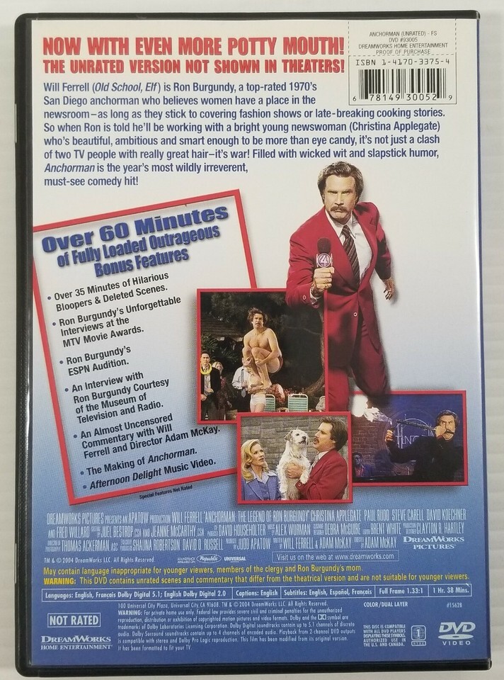 N) Anchorman: The Legend of Ron Burgundy (DVD, 2004 Extended Edition Full Frame)