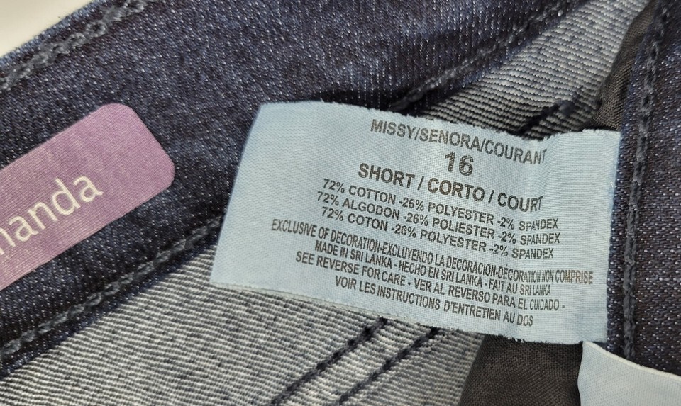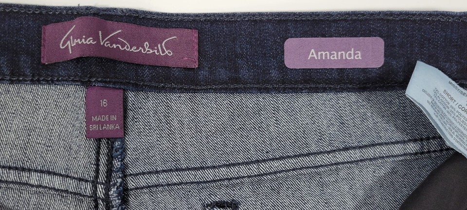 L23) Women's Gloria Vanderbilt Amanda Dark Wash Blue Jeans Pants Size 16 Short