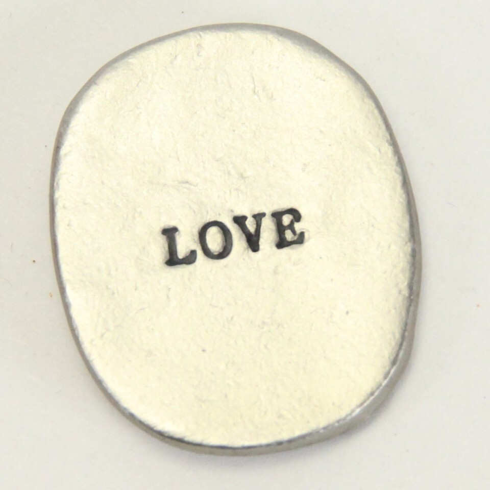 This is a Russ Berrie Co. "Love" Angel in My Pocket pewter coin.