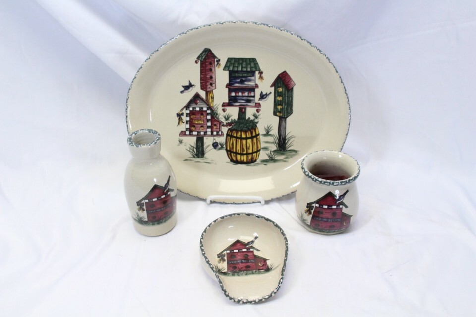 Home & Garden Birdhouse Platter Spoon Rest Candle Bottle 1998 Lot of 4