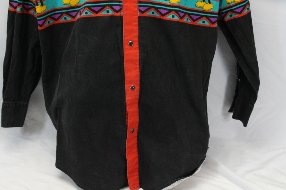 Vintage Mickey Mouse Western Shirt Pearl Snap Button Men Size Large