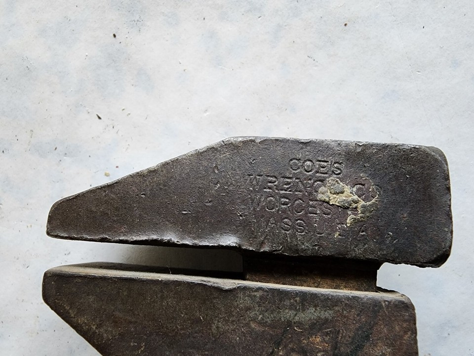 Vintage Coes 12" MFD. Under L Coes PAT Adjustable Monkey Wrench Worchester Mass