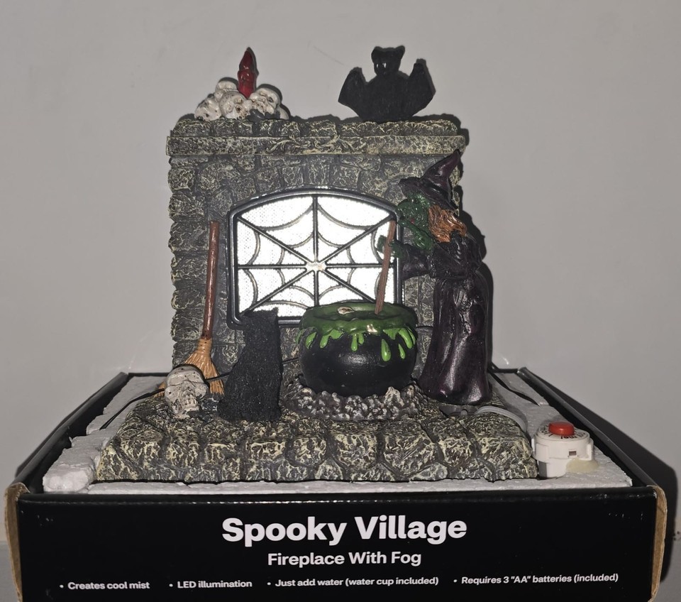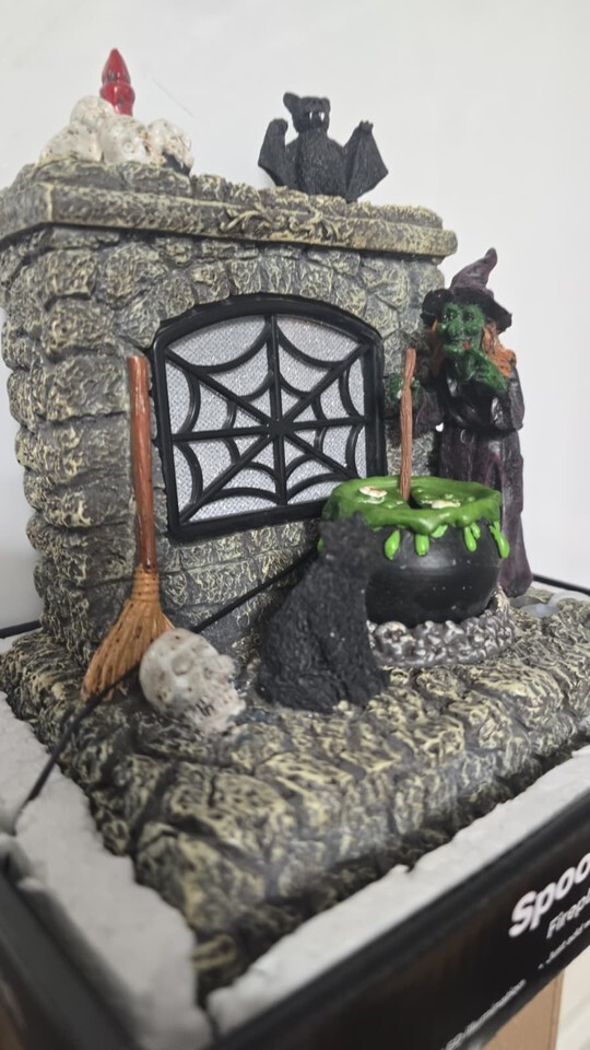7.8 Witch Cauldron Fireplace w/ Fog LED Spooky Village Town Decor