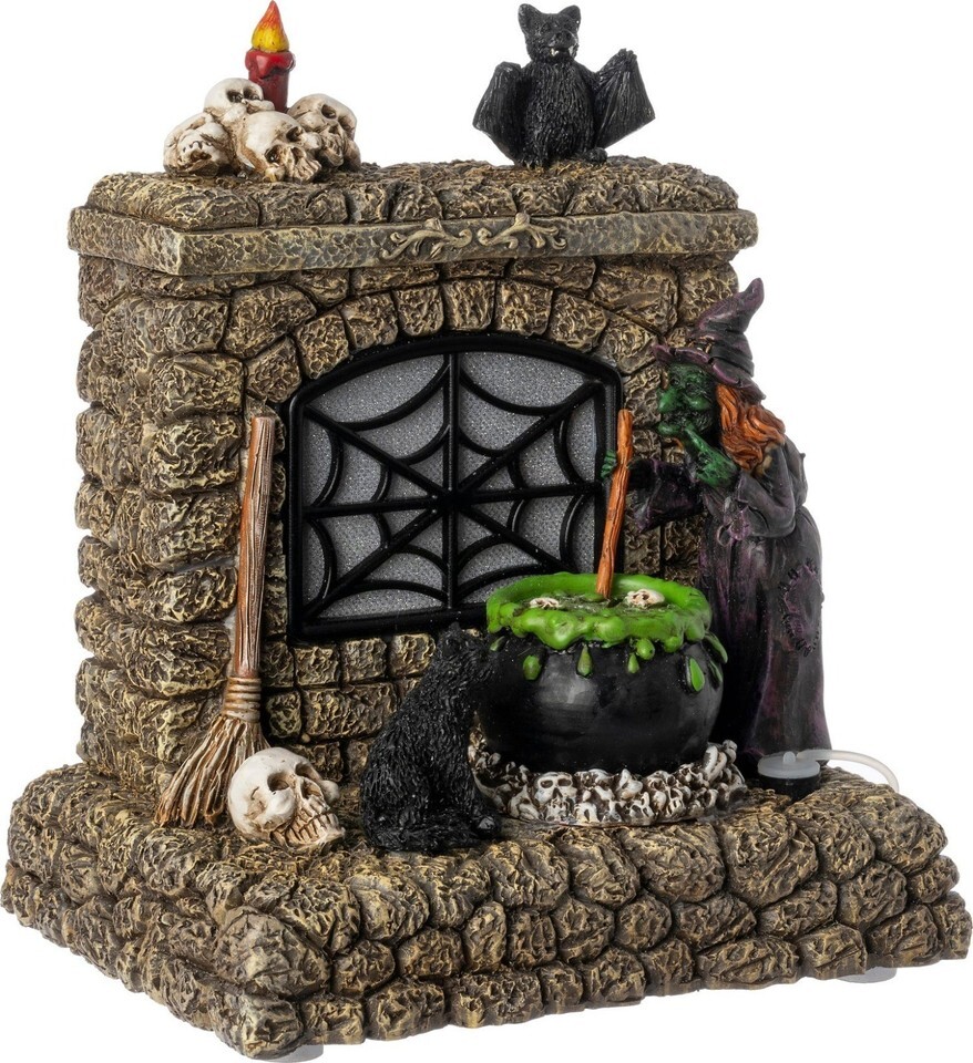 7.8 Witch & Cauldron Fireplace w/ Fog LED Spooky Village Town Decor