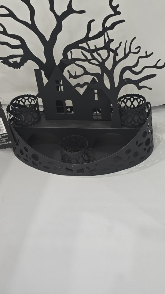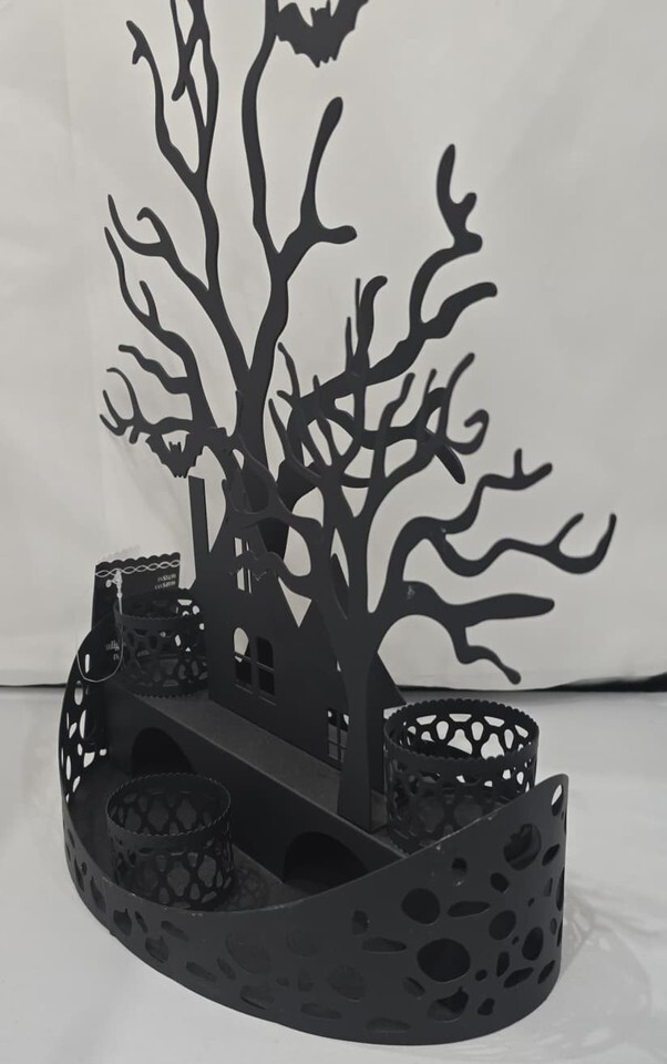 This candle holder is designed to hold three tealights to light up your Halloween home.