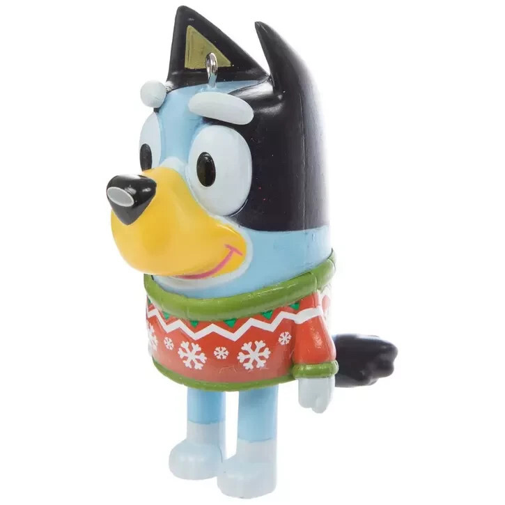 Let your kids add a personalized touch to your Christmas tree with this Bluey Ornament! This plastic ornament will be a great way for your little tykes to remember their favorite show as they grow older. It features your favorite Blue Heeler wearing a festive winter sweater in red, green, and white. It is finished with a silver string for display. Make the season memorable with lots of laughter during time spent with family watching your favorite family-friendly show!