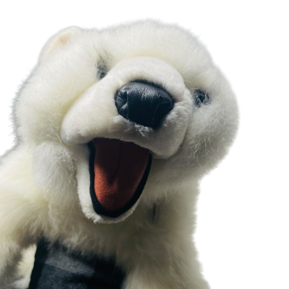 Folkmanis White Polar Bear Cub Soft Furry Hand Puppet Plush Realistic Animal