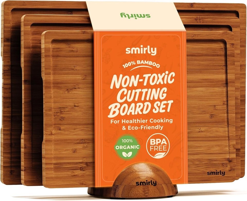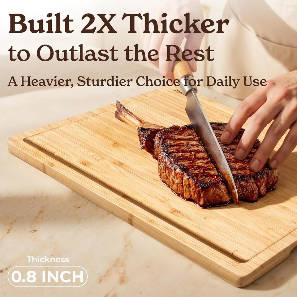Wooden Cutting Boards for Kitchen Meal Prep & Serving - Bamboo Cutting Board Set