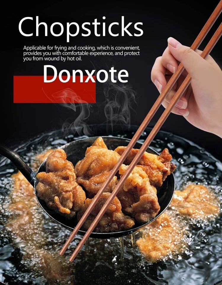 Donxote Extended Cooking Chopsticks measure 16.5 inches (42 cm), offering excellent control while protecting your hands from splattering oil and steam. They are ideal for deep frying, boiling noodles, stirring soups, or even mixing drinks like iced tea and lemonade.