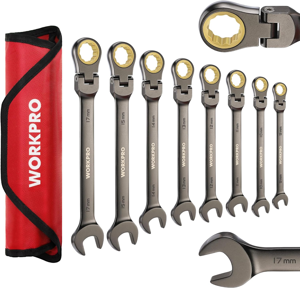 WORKPRO 8-Piece Flex-Head Ratcheting Combination Wrench Set, Metric 9-17 Mm, 72-