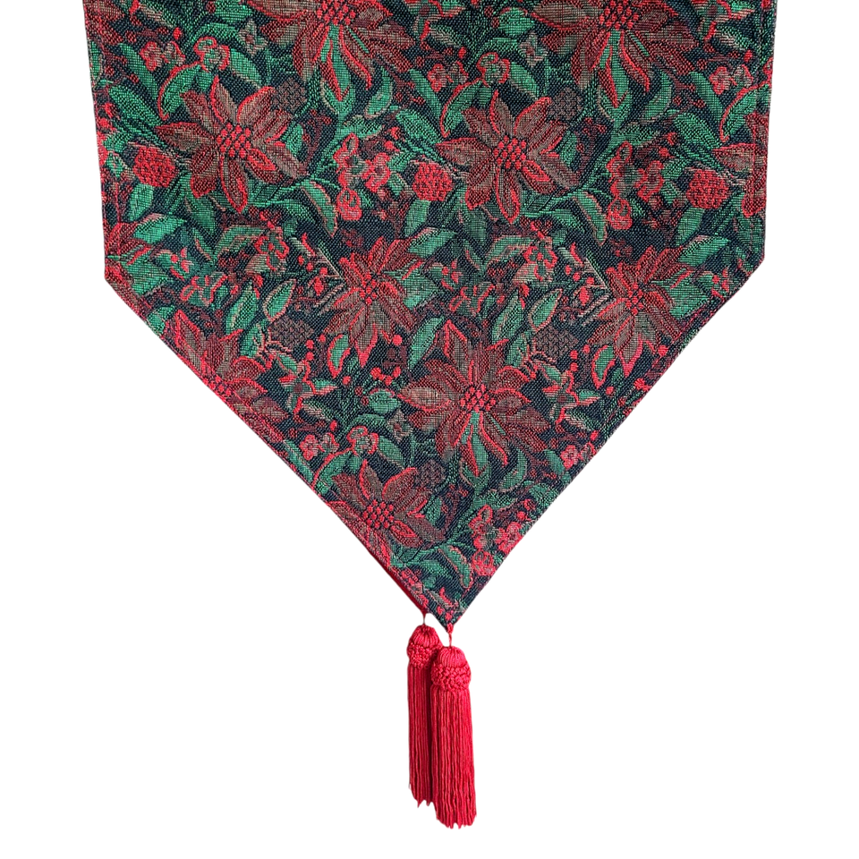 Add timeless charm to your holiday decor with this vintage tapestry-style table runner featuring a classic holly and berries motif.