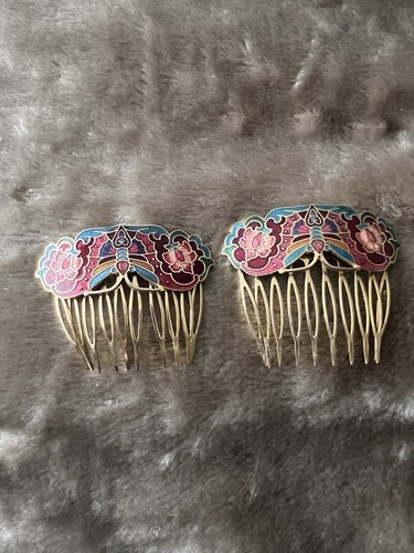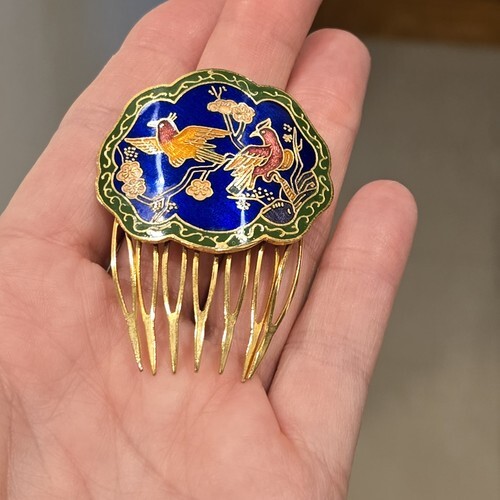Vintage Cloisonné Type Hair Comb Gold Tone and similar items