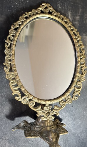 Vintage Mid Century Brass Metal French Adjustable Table Mirror G2