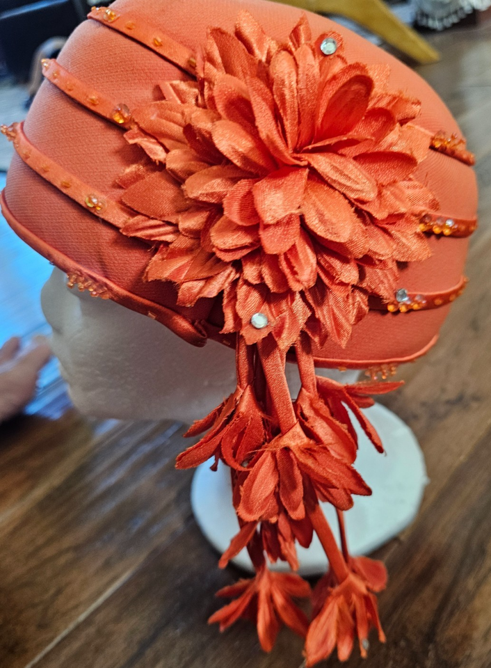Vtg Milano Paris New York Women's Hat Church Wedding Orange Beads Crystals HTS
