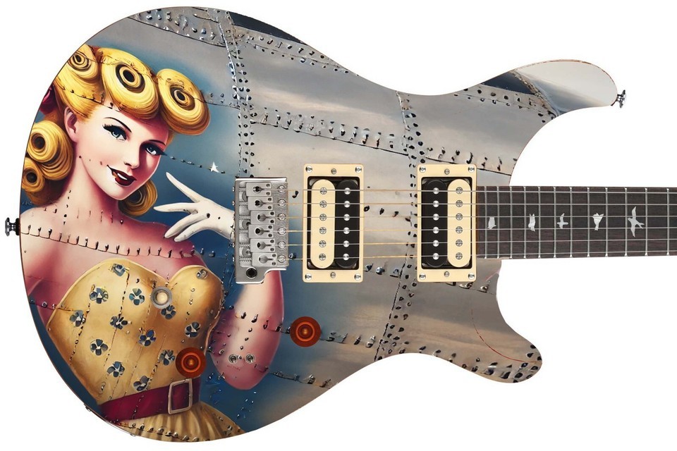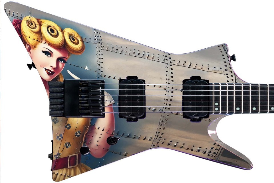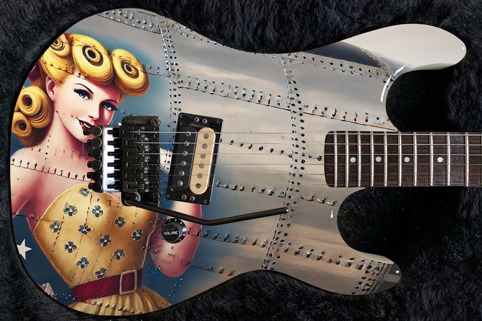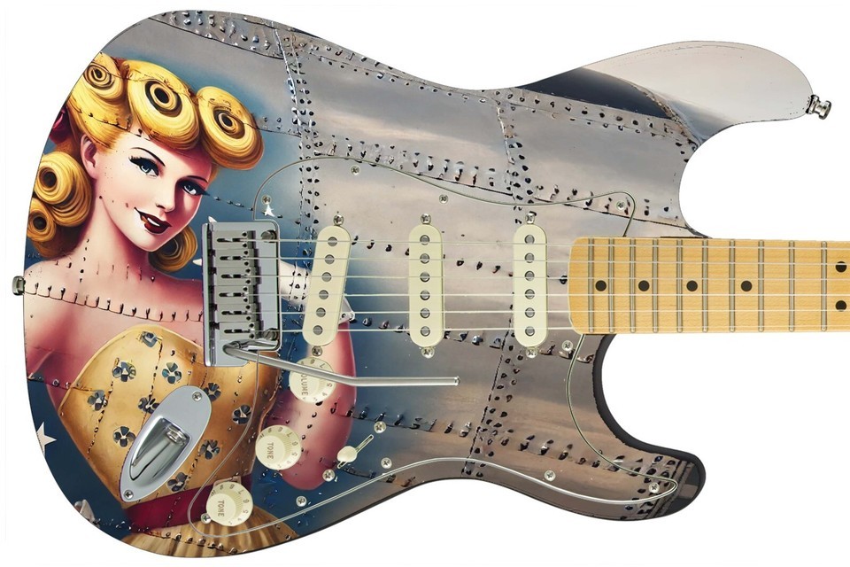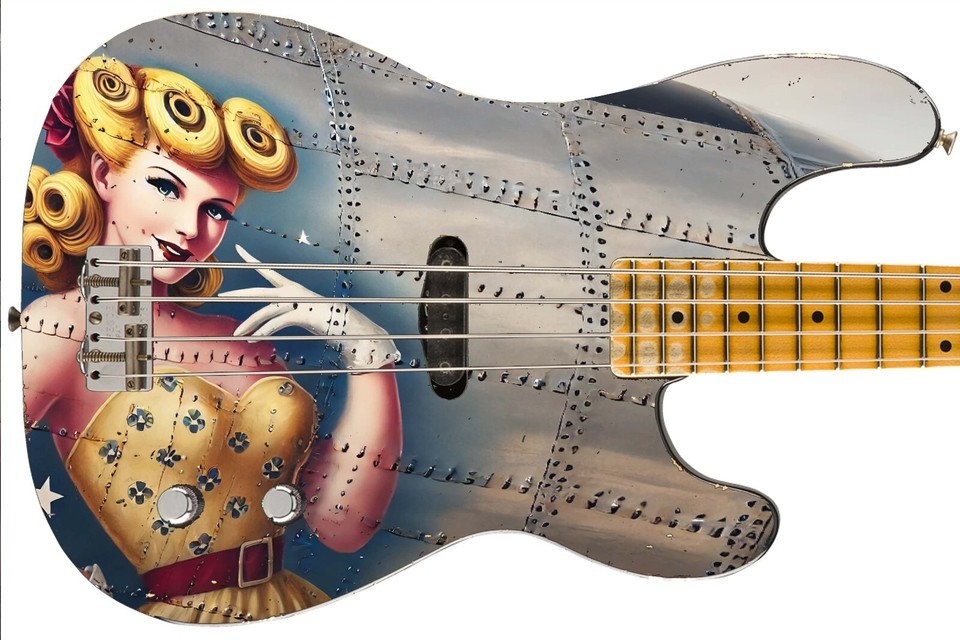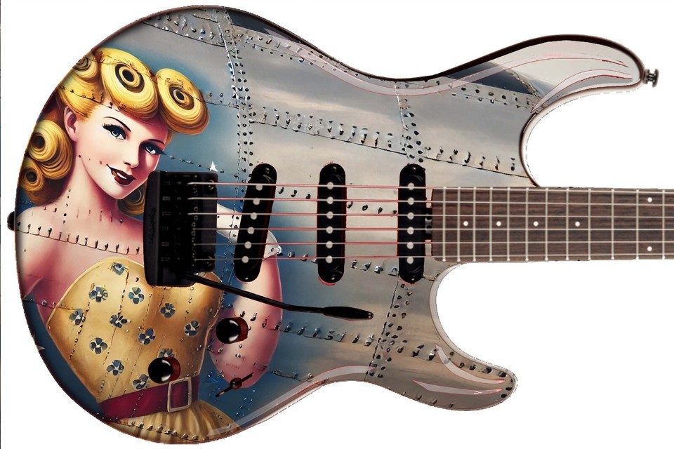 Guitar Skin Bass Axe Wraps Reface Blonde Pin Up Girl Vintage Warplane 1735
