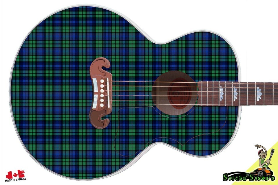 104 Righty Jumbo Acoustic Guitar Skin Green & Blue Tight Plaid