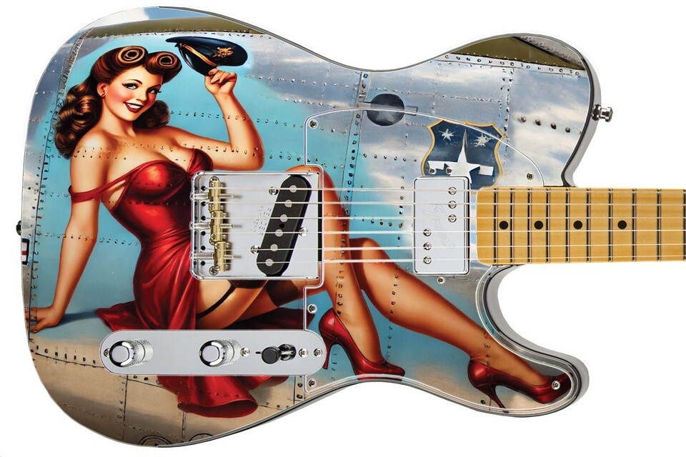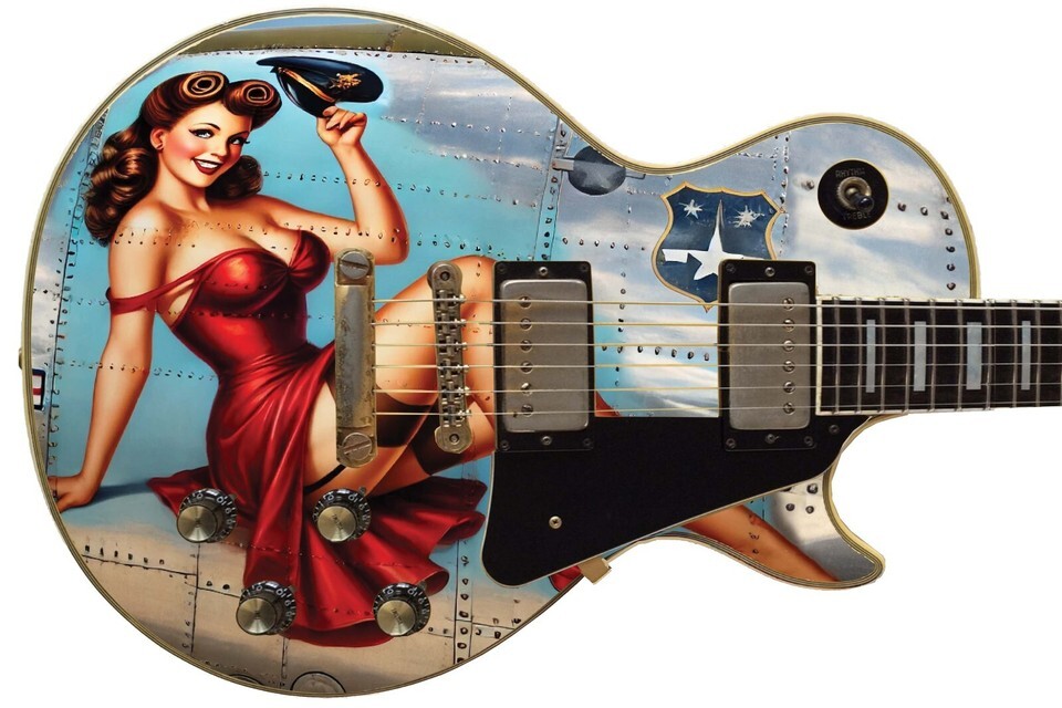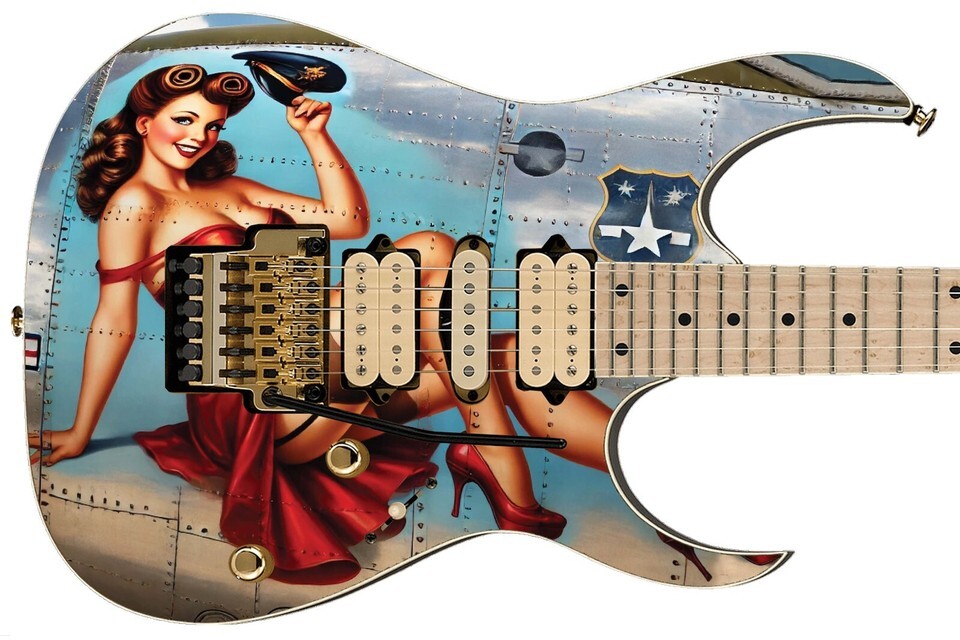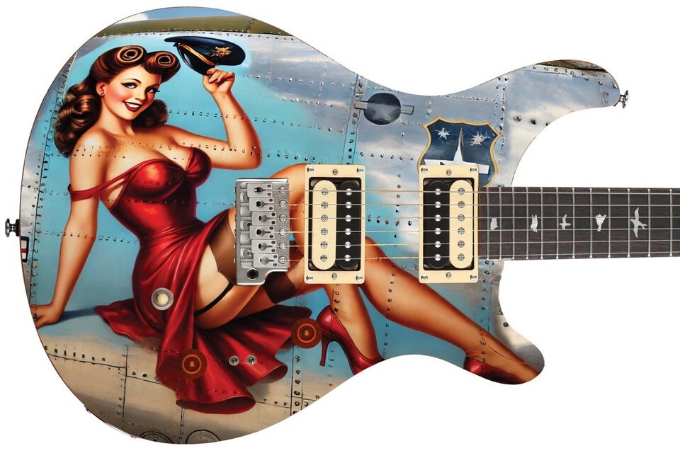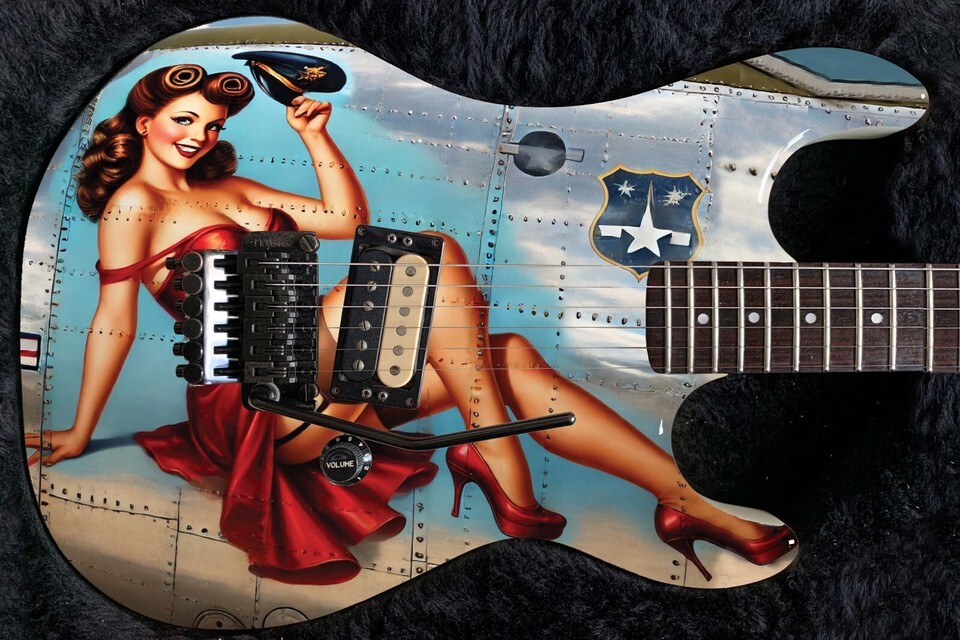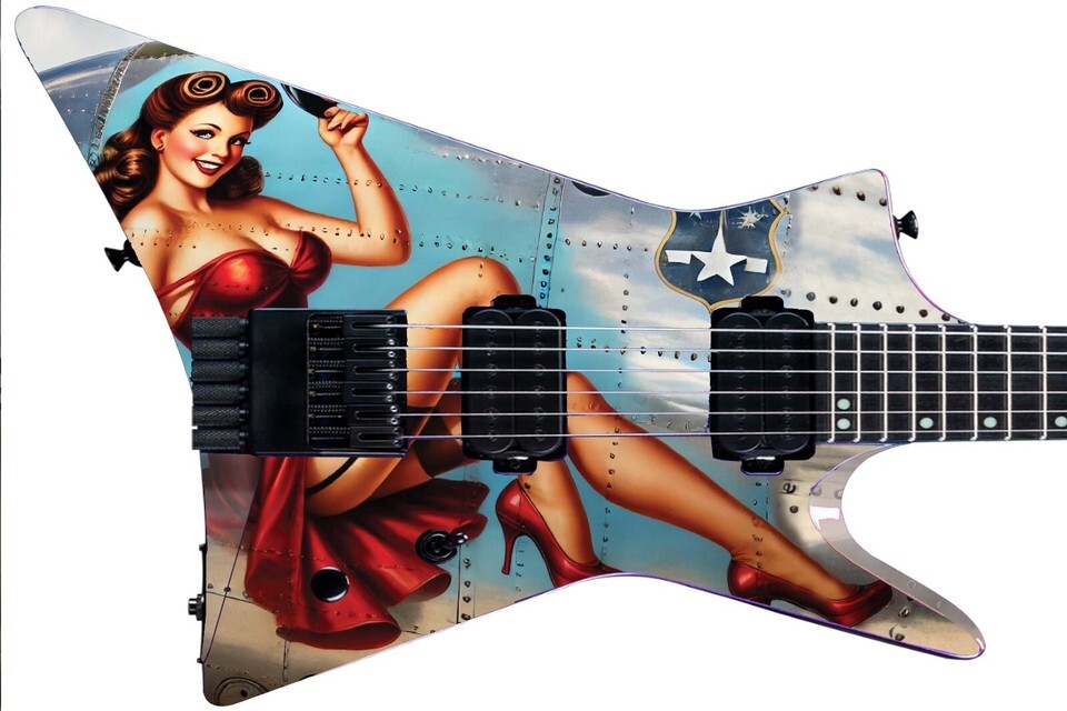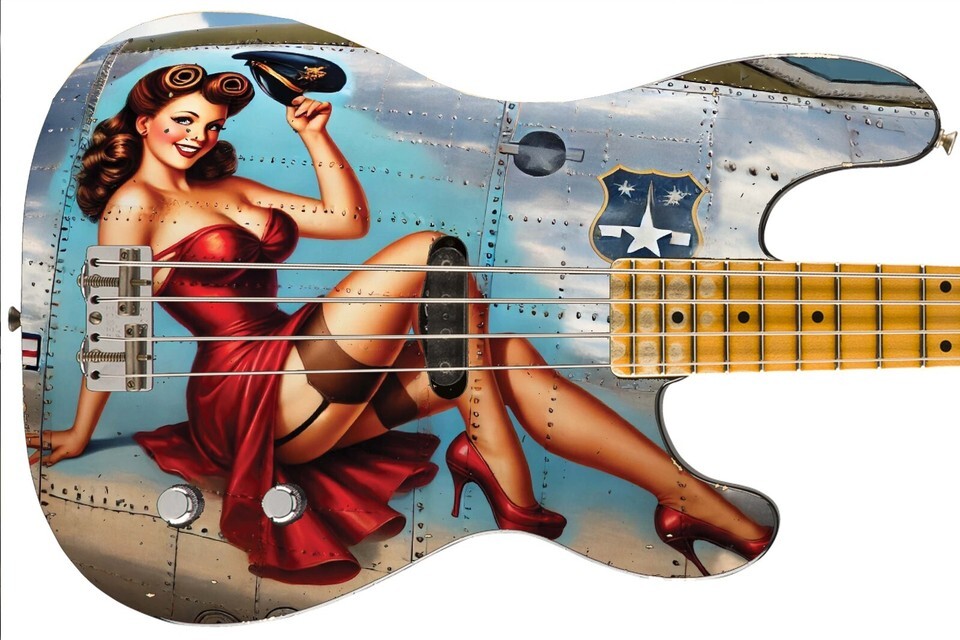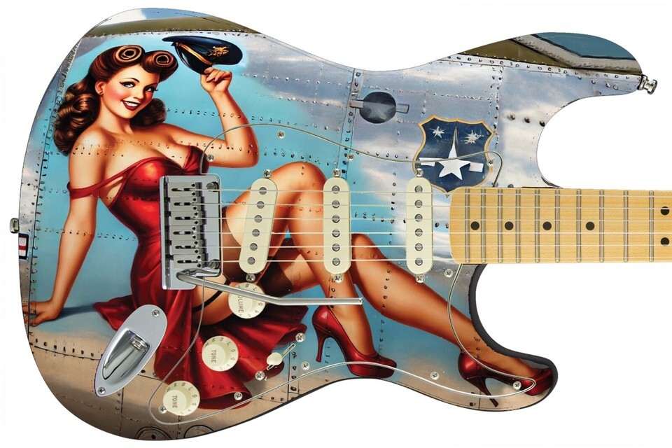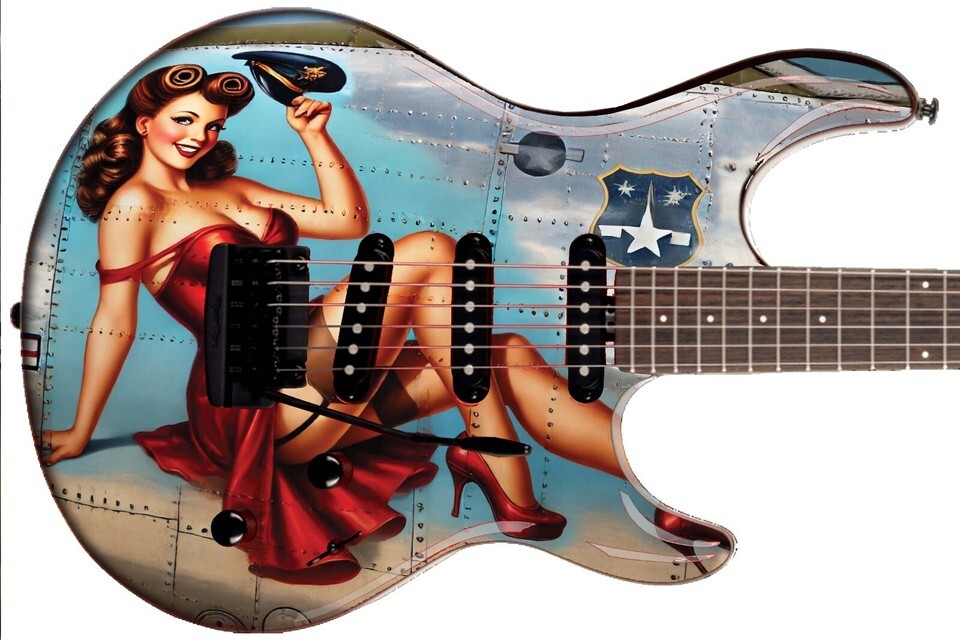 Guitar Skin Bass Axe Wraps Reface Red Dress Pin Up Girl Vintage Warplane - 1734