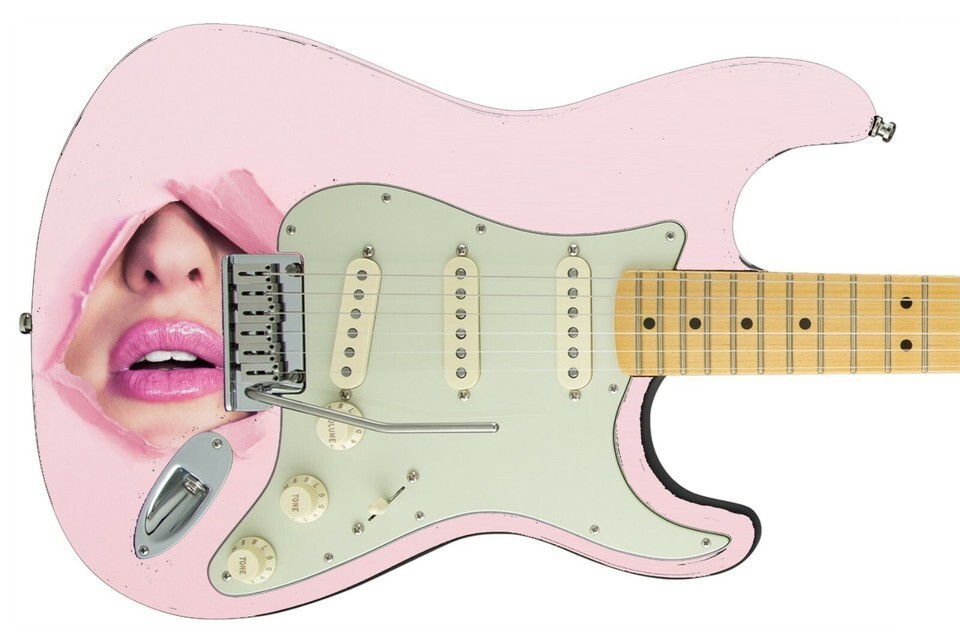 Guitar Skin Pink Hot Sexy Lips Teeth Nose Theme Body Wrap Vinyl Sticker Decal