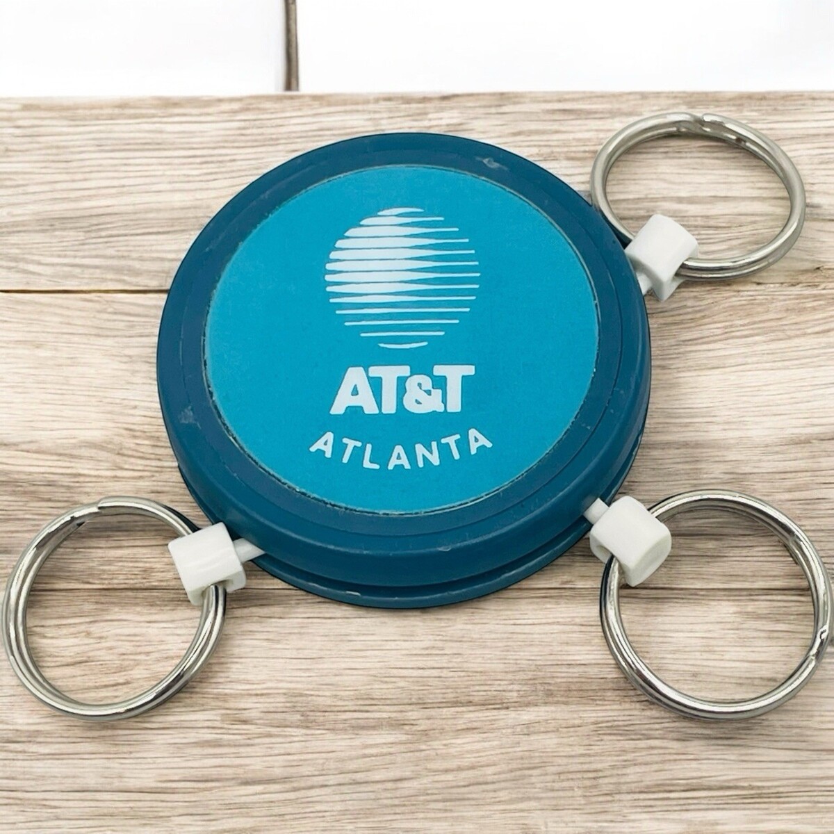 Vtg AT&T Atlanta Advertising Key Rings Blue Fob Remove 3 Rings 1-3/4”