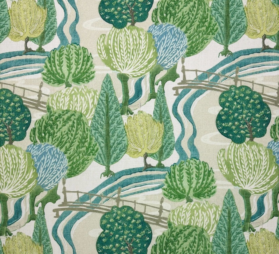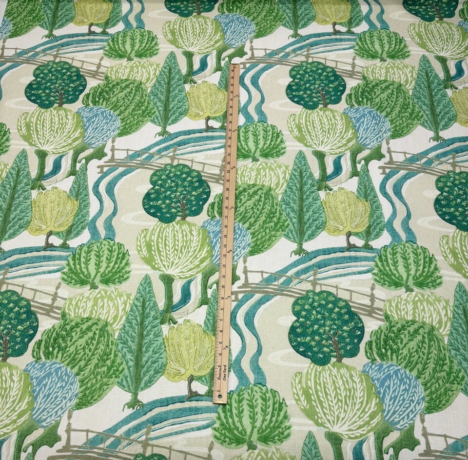 P KAUFMANN PARTERRE GARDEN LEAF GREEN BEIGE ABSTRACT TREES FABRIC BY YARD 54"W