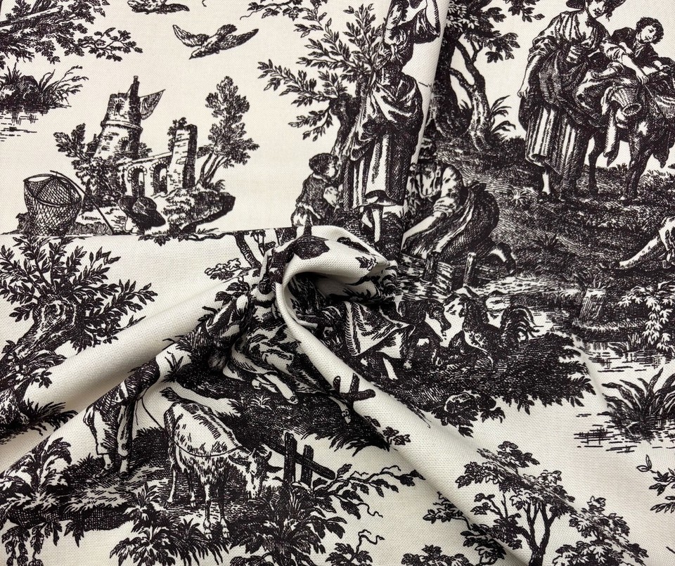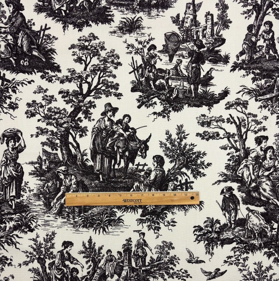 WAVERLY COUNTRY LIFE NOIR BLACK FRENCH TOILE MULTIPURPOSE FABRIC BY YARD 54"W