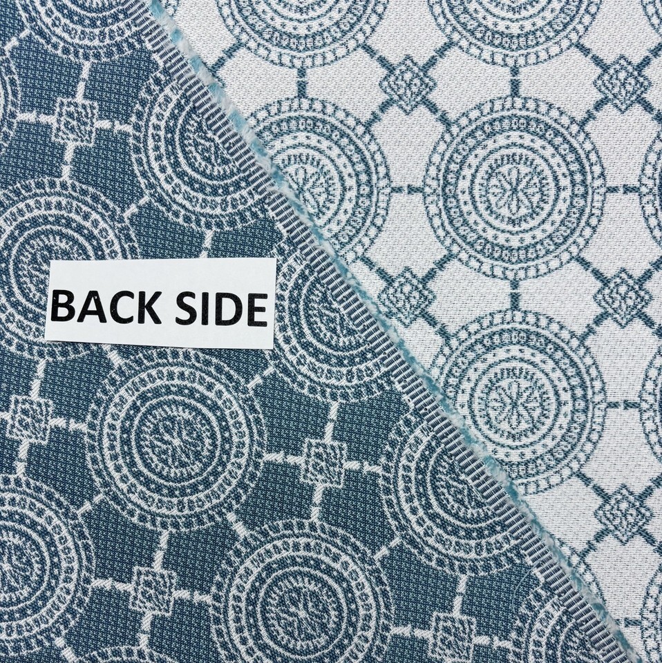 THIS FABRIC IS WOVEN OF THICK, SOFT SUNBRELLA ACRYLIC IN A PRETTY MEDALLION BLUE. RUGGED ENOUGH FOR OUTDOORS AND PRETTY ENOUGH TO USE INDOORS, THE BIG OPEN FLORAL IS PERFECT FOR BUSY SPILL PRONE FAMILY SPACES LIKE THE KITCHEN, BREAKFAST NOOK, GREAT ROOM, OR PATIO!