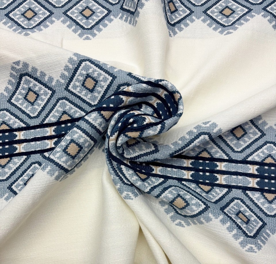 BALLARD DESIGN CORPETTI BLUE GEOMETRIC InsideOut® STRIPED FABRIC BY YARD 54"W